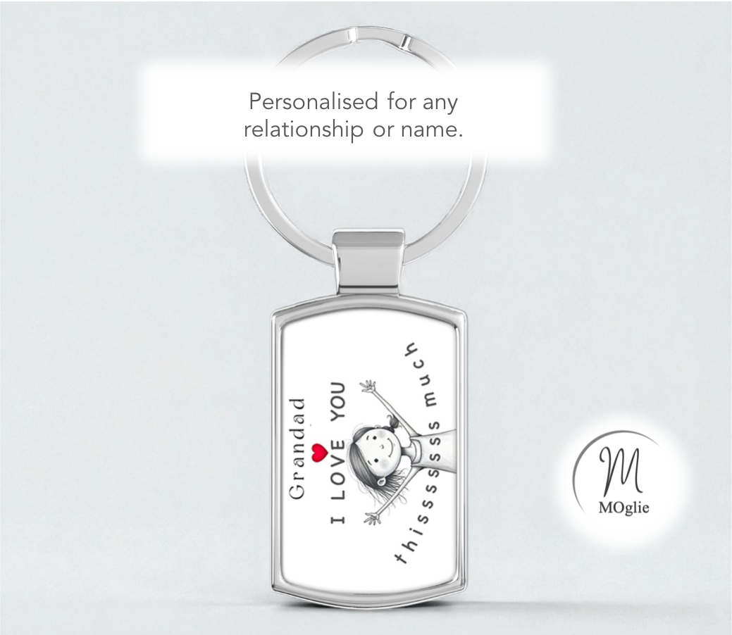 Show Grandad or Gramps just how loved he is with this adorable Personalised “I Love You” Keyring from MOglie. Featuring a charming hand-drawn style illustration of a little girl stretching her arms as wide as they can — this sweet accessory captures that special “I love you thisssssss much” moment perfectly.