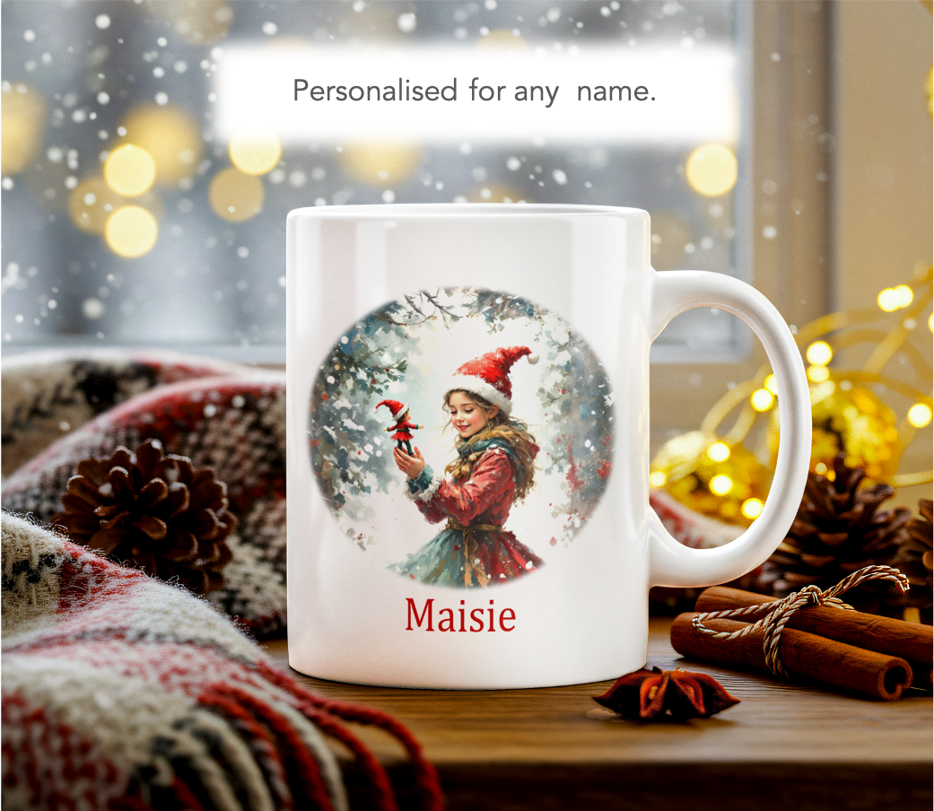 Personalise this enchanting mug with any name to make it a one-of-a-kind keepsake gift. Perfect for children, family members, or friends who love the spirit of Christmas. Lovely gift for a daughter, granddaughter, niece, friend or any female relation.